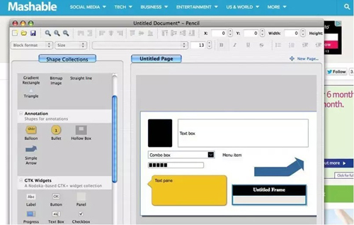 Pencil是一款開源的可以用來制作圖表和GUI原型的工具,可以作為一個獨立的app,也可以作為Firefox插件。內(nèi)置模版可以幫你繪制桌面和移動界面中用到的各種各樣的用戶界面,包括流程圖、UI和一般的通用圖形。