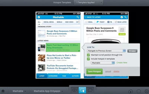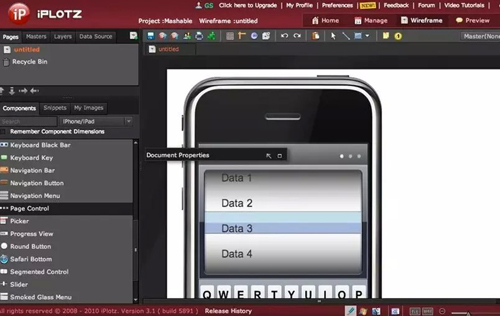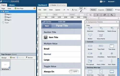作為一個強大的線框圖和原型平臺,Protoshare提供了大量移動工具集(有來自中心資源庫的大量移動模版和大量2D、3D動畫過渡)。通過“拖放”界 面,你可以快速創(chuàng)建交互式的線框圖和移動原型,然后發(fā)送至iPhone、iPad或者Android設(shè)備進行測試,體驗app的功能實現(xiàn)情況。