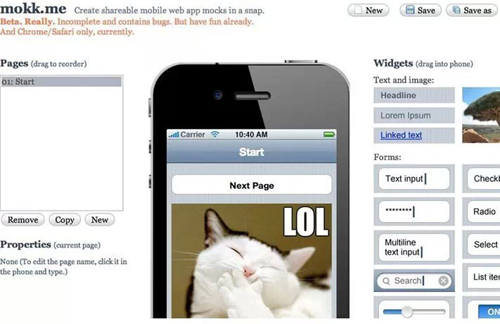 Mokk.me 是一個簡單快速的原型工具,通過界面上簡單的拖放操作,不用了解單線編程就能創(chuàng)作一個可以分享、測試以及多平臺的app。目前,Mokk.me正在測試 中,但它是一個簡單的基本的工具,任何人可以用它來創(chuàng)建app的布局。你可拖、放或者編輯小工具,可以搭建和連接頁面,還可以選擇過渡動畫。它的特點還在 于頁面和按鈕、圖片小工具、文本輸入以及復(fù)選框形式。
