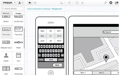 它還提供了iPhone和iPad模板,以及iOS相關(guān)的按鈕、提示框、picker、菜單、開關(guān)以及鍵盤等。你可以設(shè)置網(wǎng)格的尺寸,并預(yù)覽和分享你的線框圖。Moqups提供了一個很有用的功能就是對齊網(wǎng)格,可以使對象精準對齊。